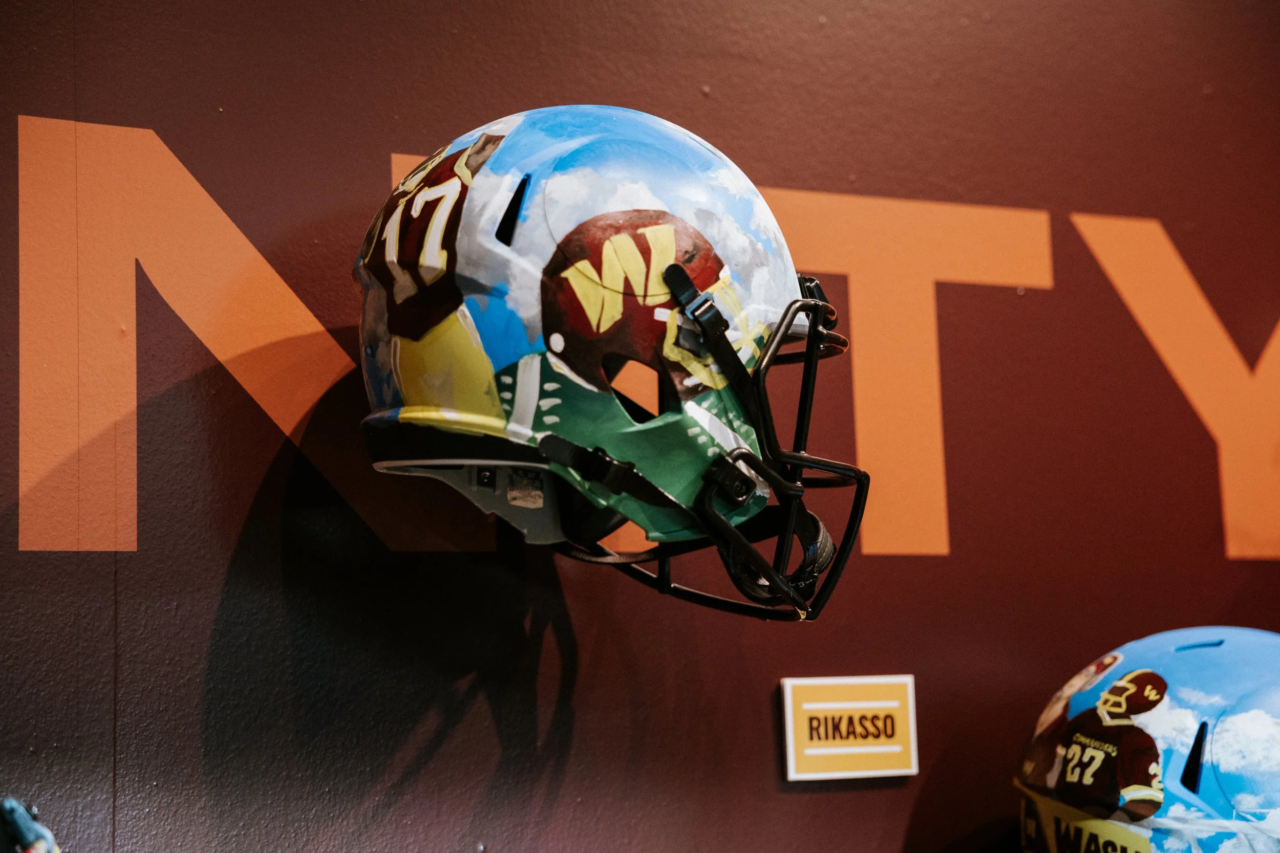 The Washington Commanders in partnership with The Museum came together to commission artists to tap into their creative genius and design custom helmets as a part of this inaugural Artist in Residence initiative. The Museum chose a wide range of creatives from all walks of life to design Helmets that represented them as well as their community.